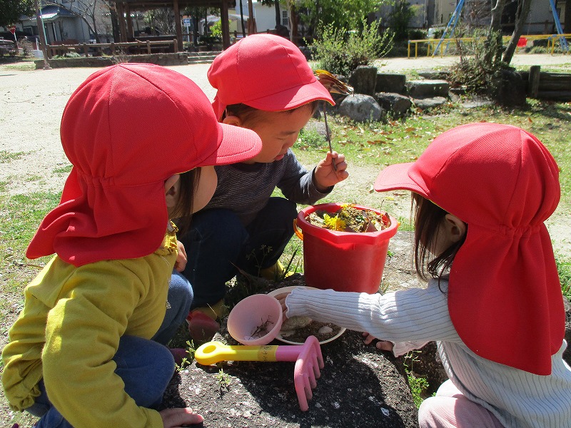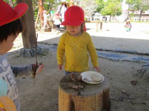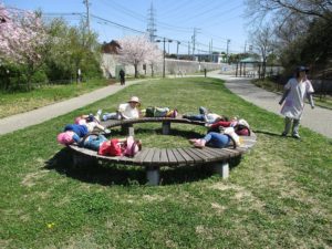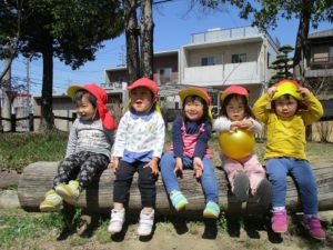 今日も春らしい陽気で、みんな、元気に公園で遊びました。