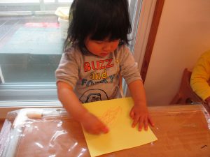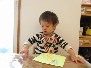 その後は、黄色い画用紙に、クレヨンでお絵描き!!