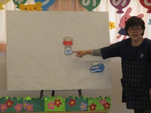もも組(2歳児)は、のりこ先生とみつはる先生。