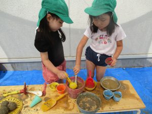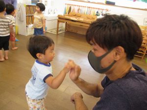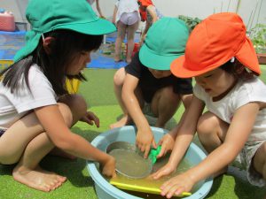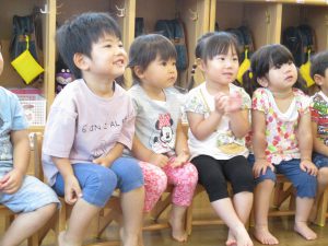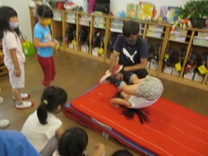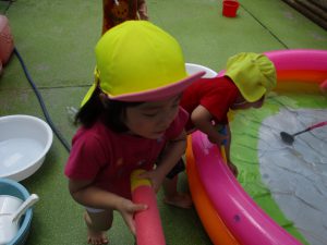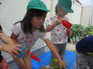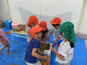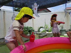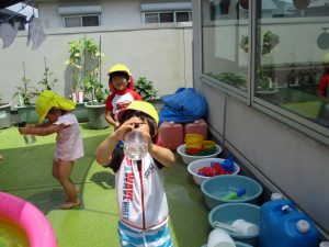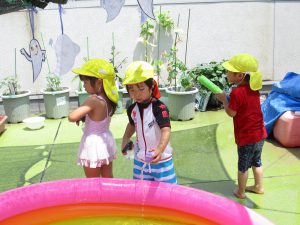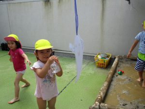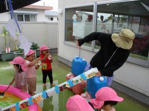 ともみ先生に、頭の上から、お水をかけてもらったね。