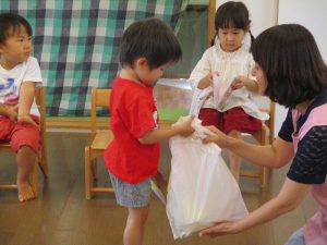 この間から、みんなが一生懸命、はさみで切っていたのは