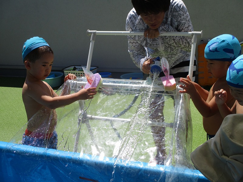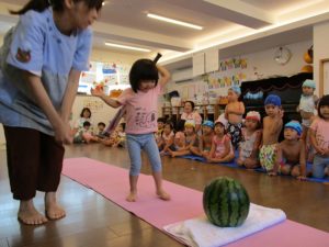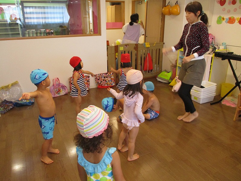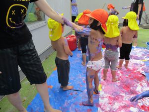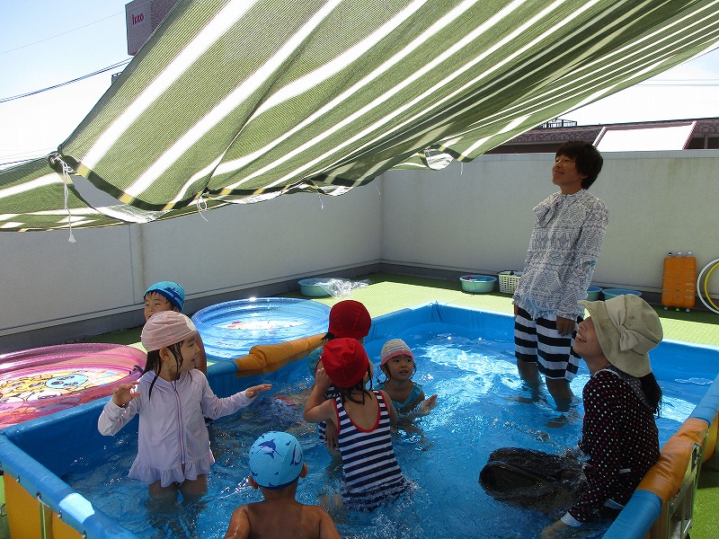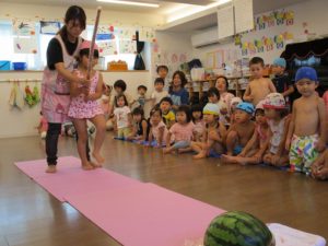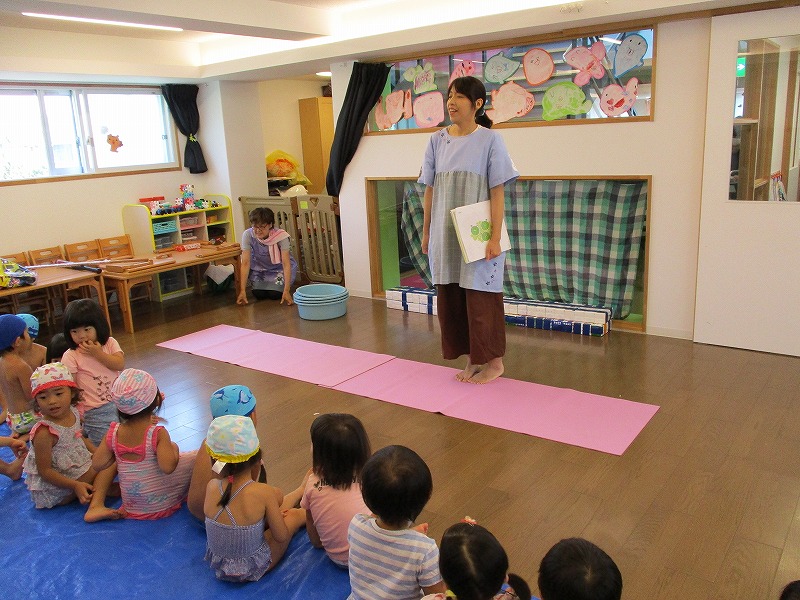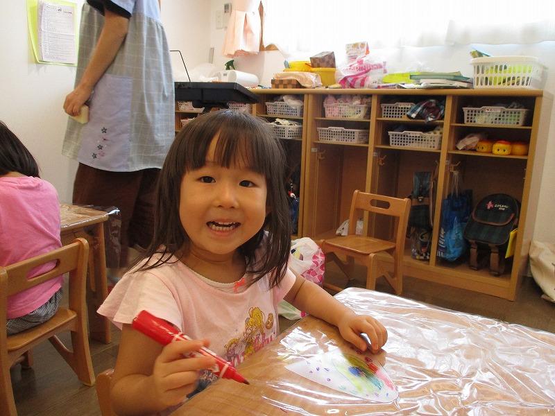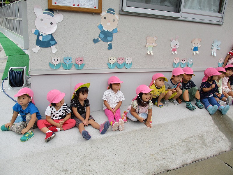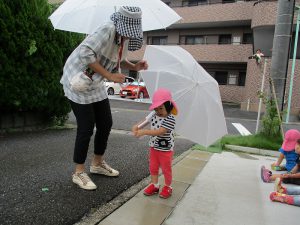 のりこ先生が、みんなに大きな傘を持たせてくれたね。