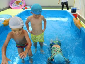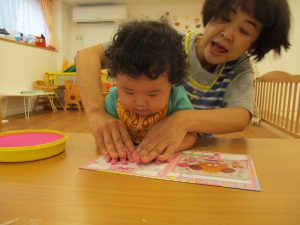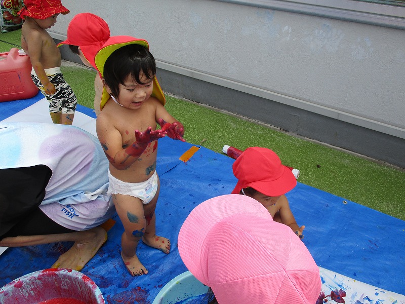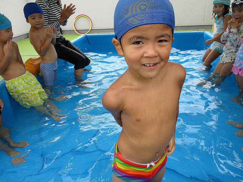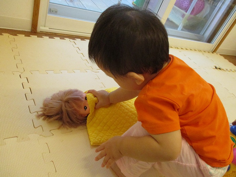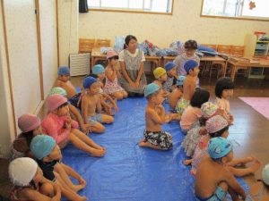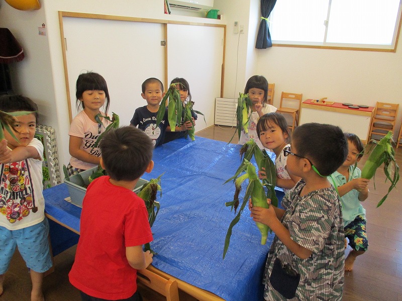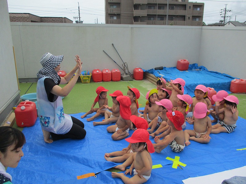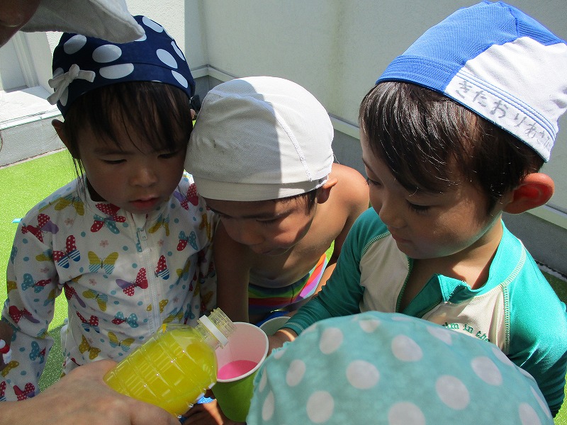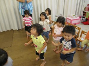 のりこ先生が、みんなに大きな傘を持たせてくれたね。
