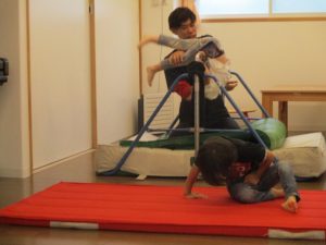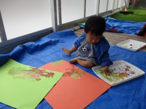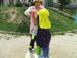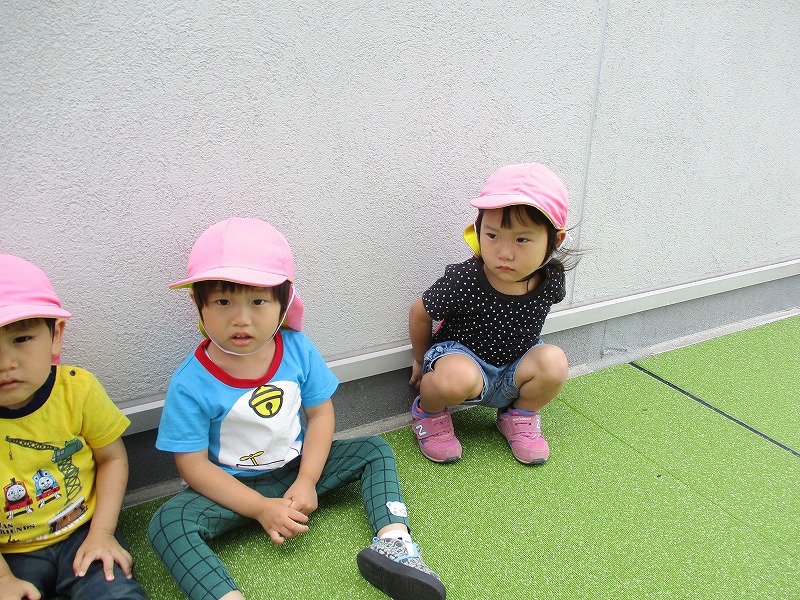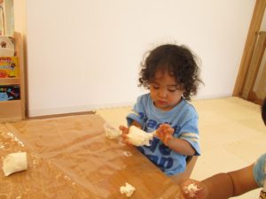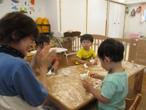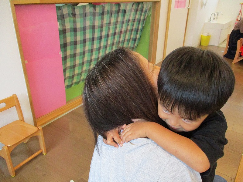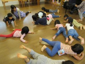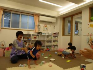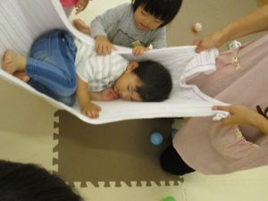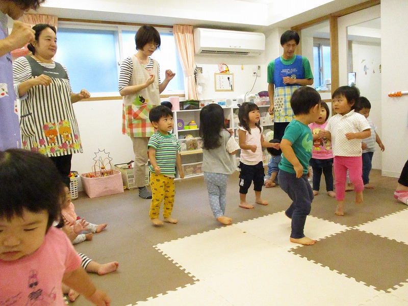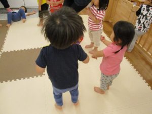 それまで、『りんごがころころ』や『頭、肩、ひざポン♪』の手遊びをして遊んだね。
