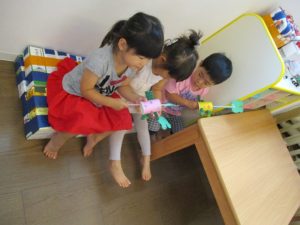今日は、いちご・りんご組のお部屋の中での様子をご紹介しますね。