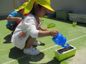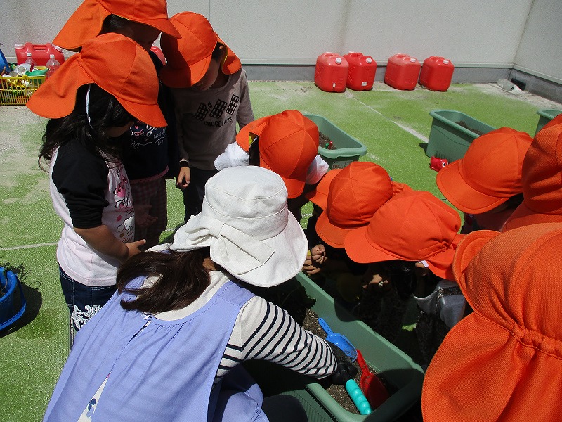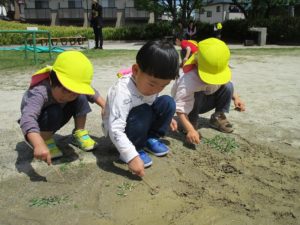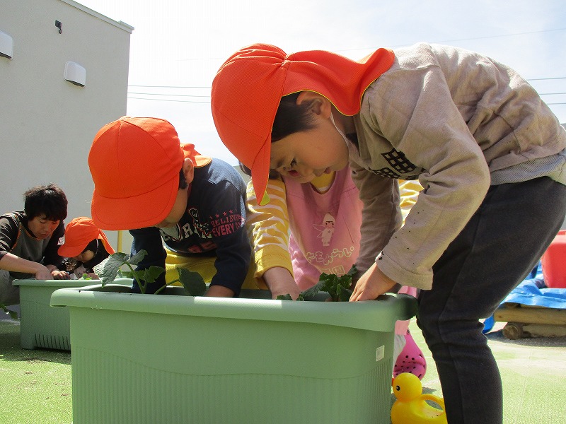 幼児組は、頑張って、野菜の苗や、種を植えました。