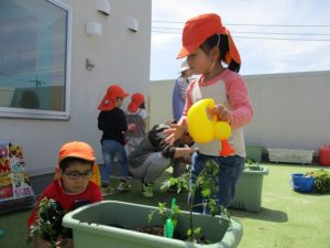 なすにおくらにミニトマト、みんなで頑張って植えたね。