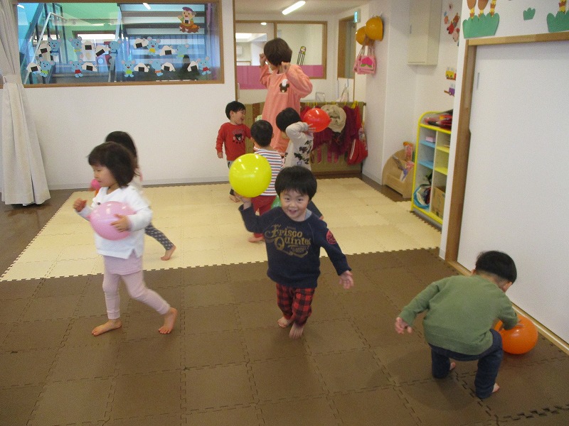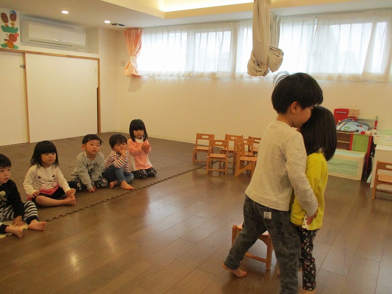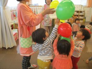 もも組(2歳児)は、のりこ先生とみつはる先生。