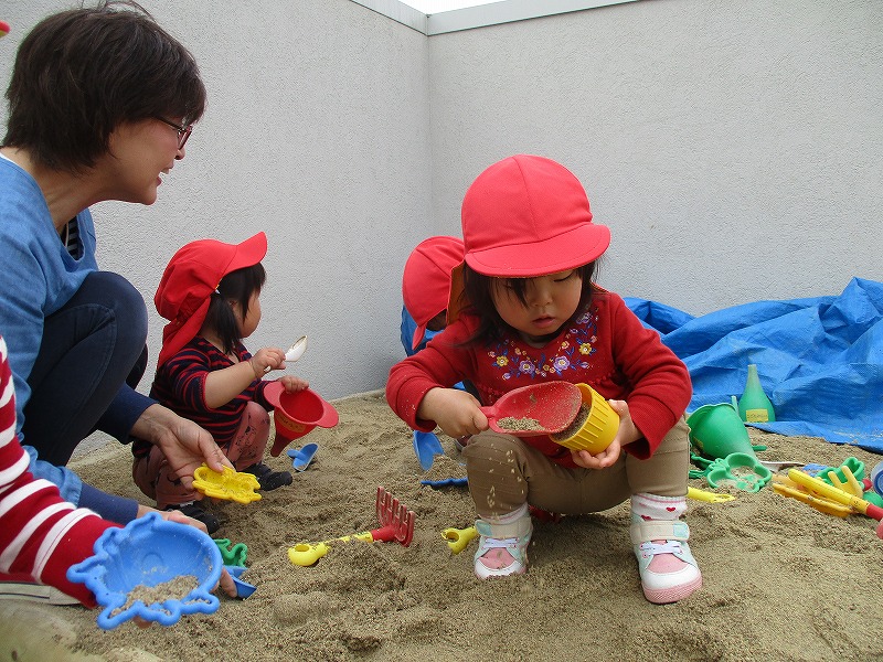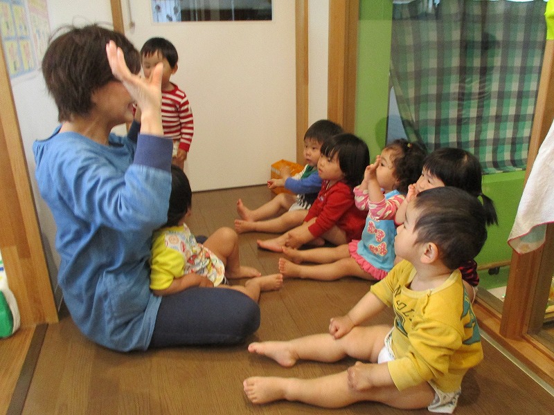 りんご組(1歳児)は、こずえ先生とりか先生。